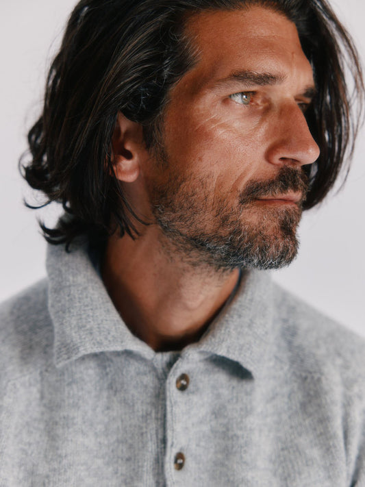 Harley of Scotland Mens Shetland Eton Collar Sweater - Silver Grey