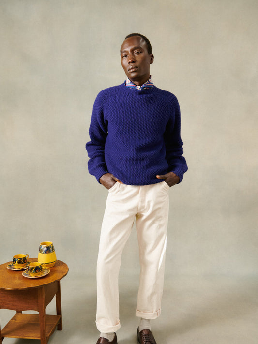 Blue Mogganer Maritime Moss Stitch Chunky Seamless Sweater - American Navy