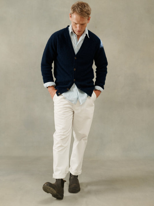 Harley of Scotland Shaggy Shetland Men's V Cardigan - Navy