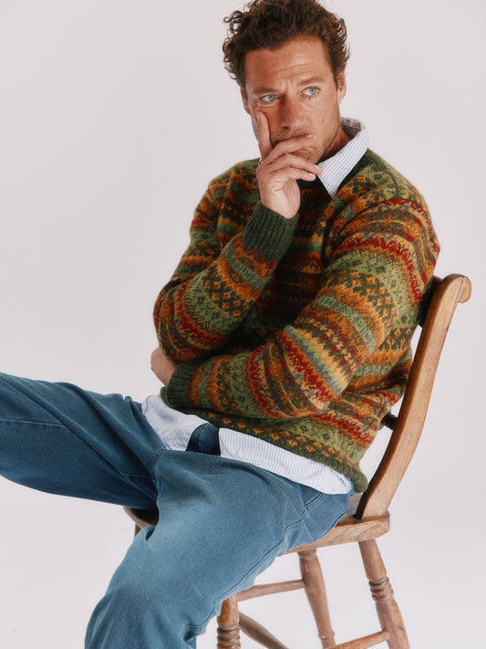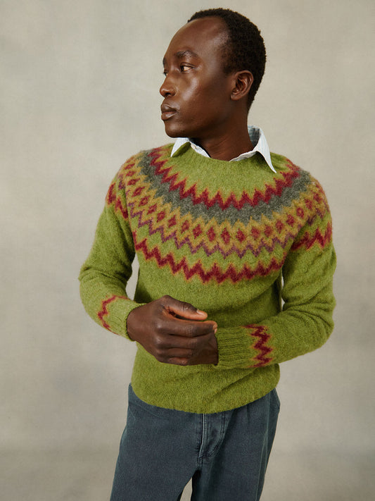 Glacier Yoke Brushed Fair Isle Men's Sweater - Olive Grove Green