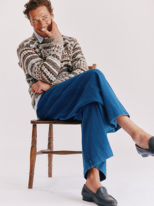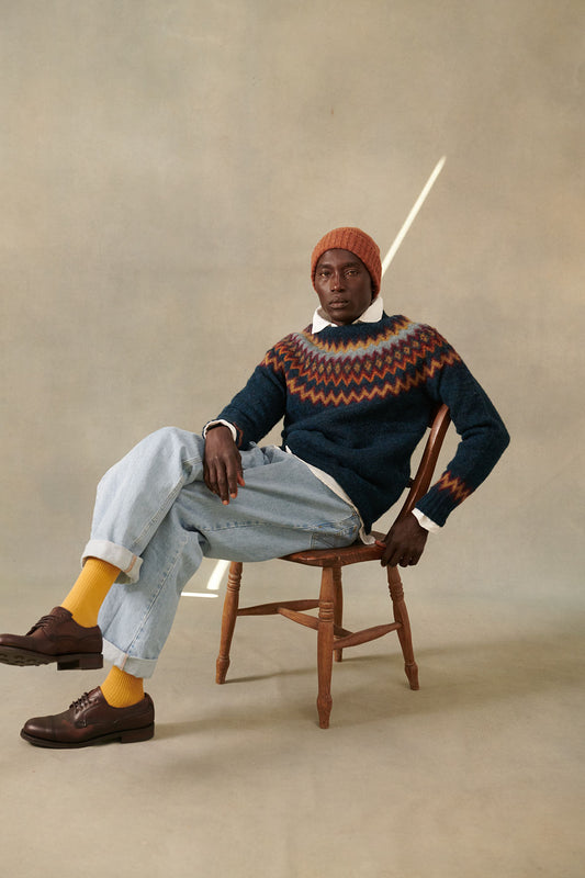 Blue Mogganer Northeaster Fairisle Yoke Chunky Ecology British Wool - Portland Natural