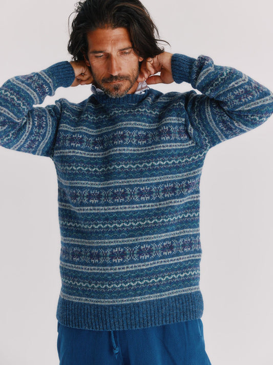 Glacier Brushed Fairisle Yoke Lambswool Sweater - Petrel Dark Teal