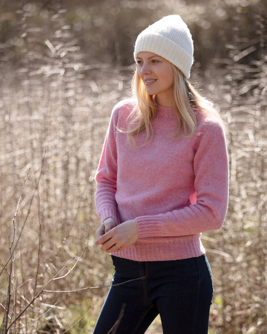 Bosie Brushed Shetland Wool Beanie Hat - Strawberry Sherbert PInk