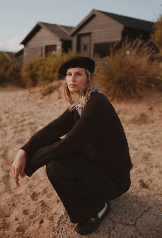 Harley of Scotland x Todd and Duncan Pure Cashmere Women's Bonnie Boxy V Neck Wide Sleeve Sweater - Carob Black